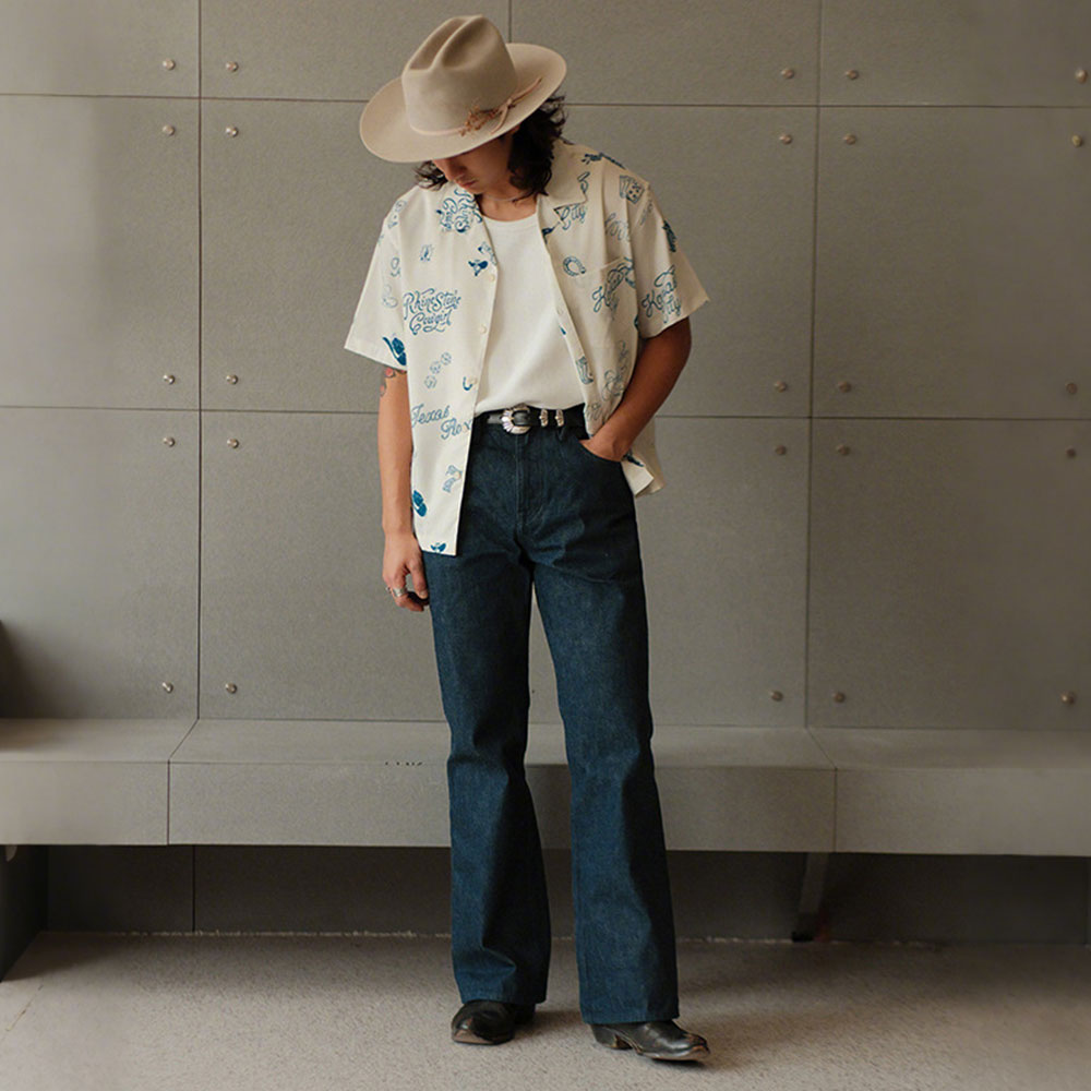 「たづな」 アメカジウエスタン風リネン混半袖シャツ